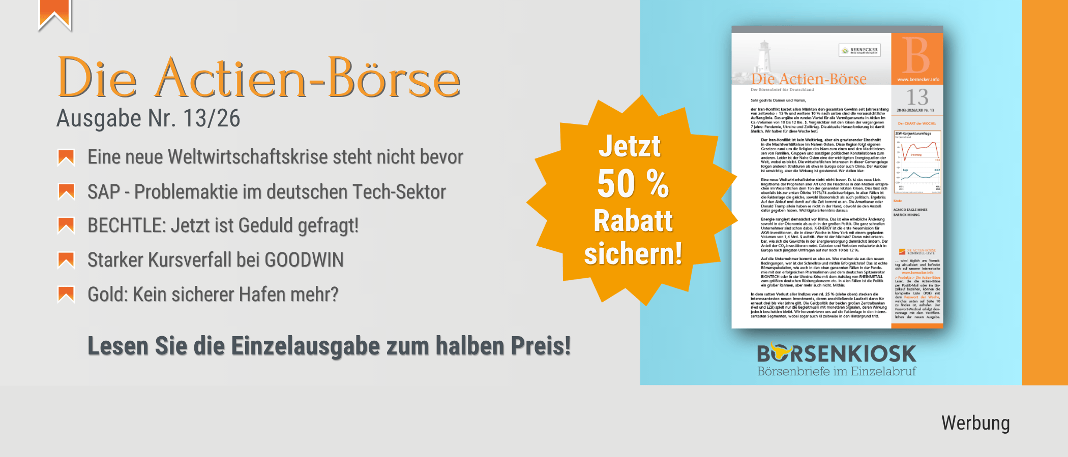 Mit dem Bernecker Börsenkompass nutzen Sie alle Chancen, überall und immer mit aktuellen Kursen und Charts.
