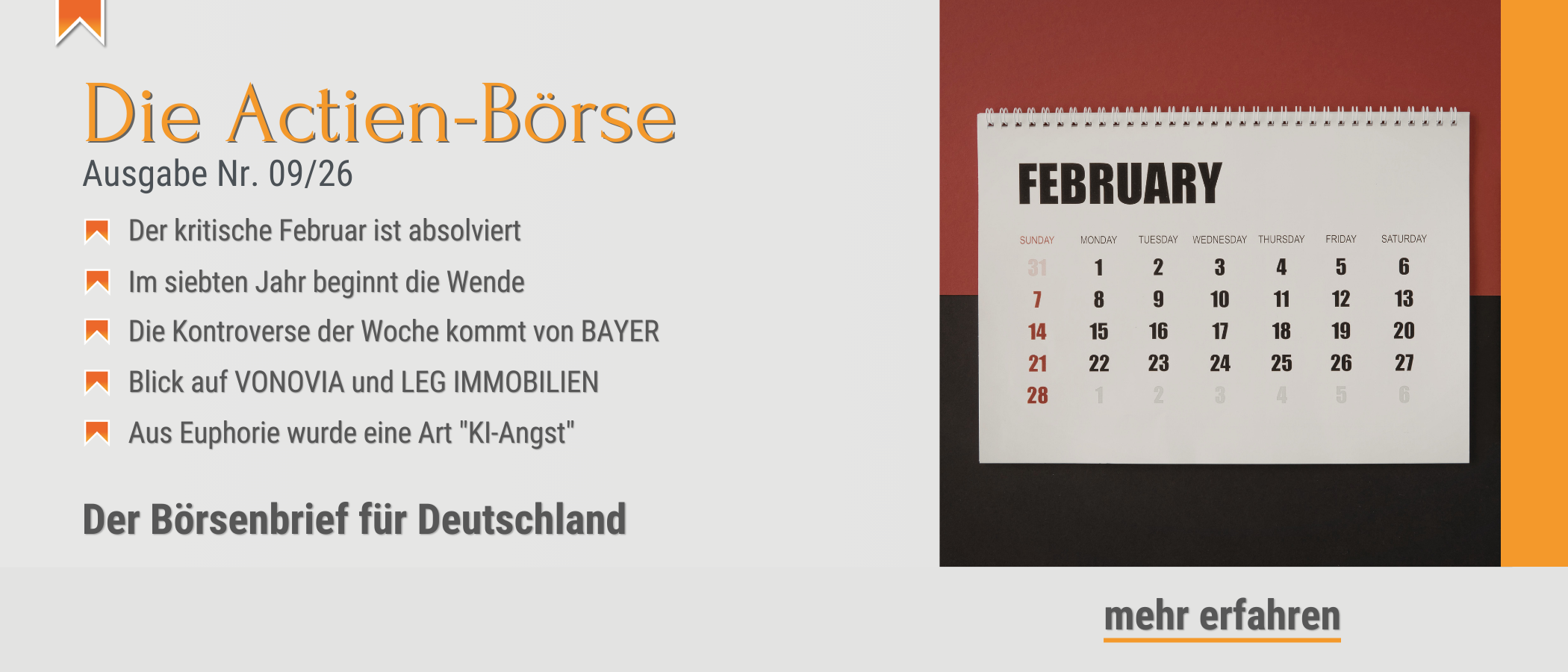 <p><strong>Das Unternehmen hat das Übergangsjahr 2025 mit einer deutlich verbesserten Profitabilität abgeschlossen, auch wenn die Zurückhaltung im Kunststoffsektor den Umsatz mit 244 Mio. € knapp unter die Ziellinie drückte. </strong>Das sorgt im Kurs für Missstimmung. Das eigentliche Prunkstück der Bilanz ist die Kapitalrendite (ROCE), die mit 16,8 % die eigene Prognose pulverisierte und zeigt, wie schlank der Konzern mittlerweile aufgestellt ist. Der Fokus verschiebt sich nun massiv in Richtung „Energy Management“: Mit innovativen Lösungen für die Flüssigkeitskühlung von KI-Rechenzentren sitzt TECHNO­TRANS direkt an der Schnittstelle zum Megatrend der KI. Mehrere Großaufträge im Bereich Datacenter untermauern das Book-to-Bill-Ratio von 1,1 und sichern die Auslastung für 2026 ab. Nun kommt es auf das endgültige Zahlenwerk am 24. März nebst frischen Auftragsdaten und den Ausblick auf 2026 an. Der Titel bleibt bis dahin haltenswert.</p> <p><strong>Dies ist ein Ausschnitt aus der neuen <a href="http://www.bernecker.info/actien-boerse">Actien-Börse</a>.</strong> In der aktuellen Ausgabe analysiert Hans A. Bernecker, Deutschlands erfahrenster Börsenexperte, die Marktlage und verrät Ihnen, wie Sie sich als Anleger am besten positionieren.</p> <p><strong>Den kompletten Brief erhalten Sie im Abo oder im Einzelbezug auf www.bernecker.info und über unsere Bernecker-App. </strong> </p> <p><strong>Weitere Themen der <a href="http://www.bernecker.info/actien-boerse">Actien-Börse Nr. 09</a> u. a.:</strong></p> <p style="padding-left: 40px;">- Der kritische Februar ist absolviert</p> <p style="padding-left: 40px;">- Im siebten Jahr beginnt die Wende</p> <p style="padding-left: 40px;">- Die Kontroverse der Woche kommt von BAYER</p> <p style="padding-left: 40px;">- Blick auf VONOVIA und LEG IMMOBILIEN</p> <p style="padding-left: 40px;">- Die deutsche Bauwirtschaft schaltet in den ersten Gang</p> <p style="padding-left: 40px;">- Aus Euphorie wurde eine Art "KI-Angst"</p> <p><strong>Ihre Bernecker Redaktion / <a href="https://www.bernecker.info/">www.bernecker.info </a></strong></p>