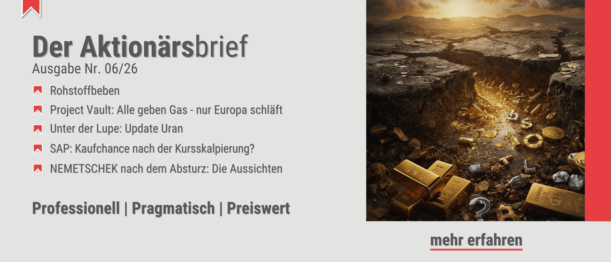 Unser Börsenbrief-Finder hilft Ihnen, schnell und einfach den passenden Börsenbrief zu finden. Nach nur wenigen Fragen erhalten Sie 2 bis 3 Vorschläge, sofort und ohne Registrierung. Viel Spaß mit unserem Börsenbrief-Finder!