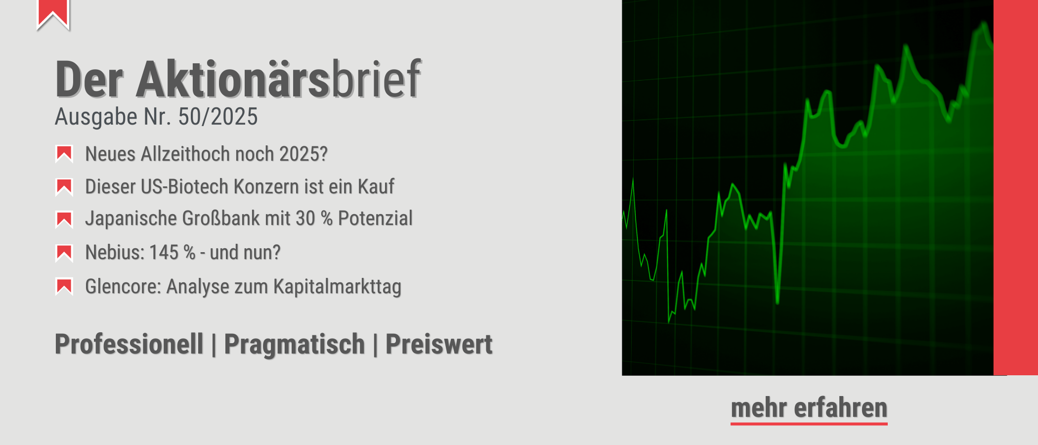 <p>Jetzt erwartet man nur noch ein währungsbereinigtes Umsatzwachstum von 2 bis 5 % und eine EBITDA-Marge von ca. 27 %, während der Markt bisher mit 8 % Wachstum und 29 % Marge kalkuliert hatte. Schott spricht von einem Übergangsjahr 2026, ausgelöst durch Nachfrageschwäche bei Glasspritzen im Segment Drug Delivery Systems (DDS). Die Mittelfristziele 2027 bis 2029 wurden auf 6 bis 8 % Umsatzplus und eine Marge Richtung 30 % gesenkt. Vorläufig stieg 2024/25 der Umsatz 5,8 % auf 986 Mio. € und die EBITDA-Marge auf 28,4 %, EBITDA 280 Mio. €. Analysten senkten zwar ihre Kursziele, blieben aber mehrheitlich optimistisch gestimmt. Der verhaltene Ausblick ließ den Kurs auf ein Rekordtief von 15,84 € fallen. Der Glaubwürdigkeitsbruch belastet kurzfristig, doch bei Stabilisierung der Spritzennachfrage ist nach dem Absturz zumindest technisches Erholungspotenzial vorhanden. </p> <p>Dies ist ein Auszug aus unserem Brief<a href="http://www.bernecker.info/aktionaersbrief"> „Der Aktionärsbrief“</a>, Ausgabe 50.</p> <p>Schlaglichter dieser Ausgabe:</p> <p>- Zuversicht und Stolpersteine</p> <p>- Japanische Großbank mit 30 % Potenzial</p> <p>- 145 % mit NEBIUS GROUP - und nun?</p> <p>- Dynamisch wachsender Markt für Gensequenzierung unter der Lupe</p> <p>Börsianer lesen Briefe der Hans A. Bernecker Börsenbriefe GmbH unter <a href="https://www.bernecker.info/">www.bernecker.info</a> im Abo oder im Einzelabruf!</p> <p>Ihre Bernecker Redaktion / www.bernecker.info</p>