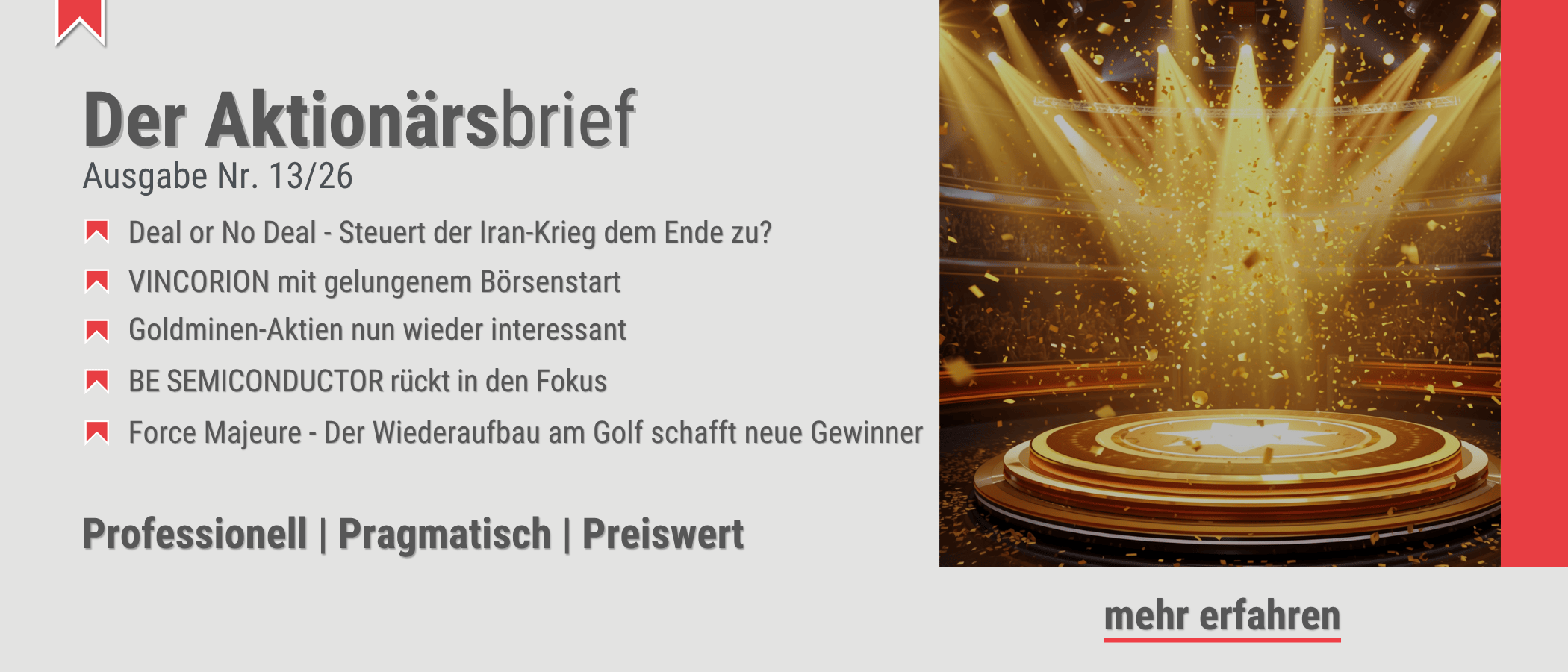 <p style="text-align: justify;">Thema ist heute das Helium-Paradoxon: während die Schlagzeilen vom Ölpreis dominiert werden, braut sich in der Tiefe der Lieferketten ein weitaus gefährlicherer Sturm zusammen. Der Konflikt am Golf hat das Herz der globalen Heliumversorgung getroffen, das öffnet eine Lücke die gefüllt werden muss. Schon jetzt sind die Preise um fast 70 % gestiegen und Analysten halten eine Verdopplung für wahrscheinlich. Für die Hightech-Industrien in Taiwan und Südkorea ist der Preis fast nebensächlich – sie müssen kaufen, um einen totalen Produktionsstopp zu verhindern. Wer diese Lücke füllen kann und profitiert erfahren sie in der heutigen TB-Daily: Wir haben Spekulationen auf zwei Kandidaten gestartet, denen Sie über <a href="https://www.bernecker.info/tb-daily">diesen Link</a> folgen können. </p>