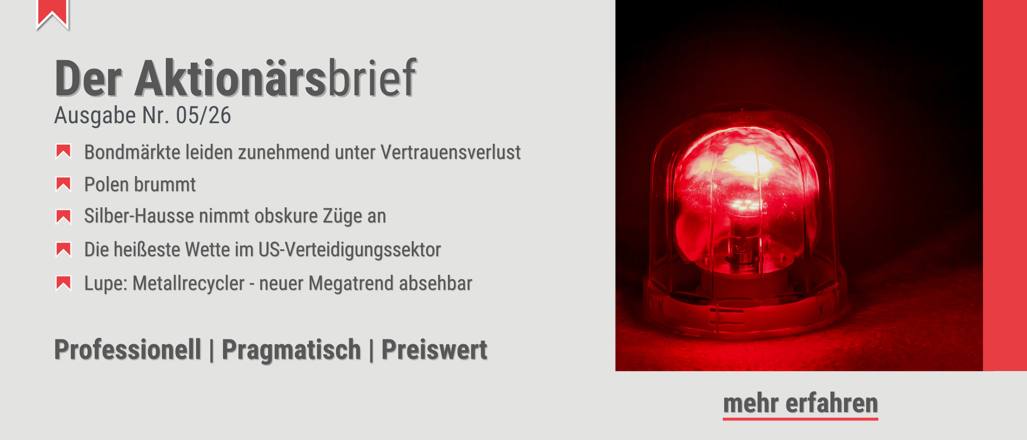 Unser Börsenbrief-Finder hilft Ihnen, schnell und einfach den passenden Börsenbrief zu finden. Nach nur wenigen Fragen erhalten Sie 2 bis 3 Vorschläge, sofort und ohne Registrierung. Viel Spaß mit unserem Börsenbrief-Finder!