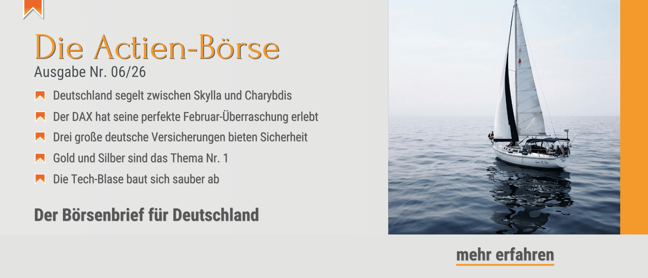 <p><strong>Der Spezialist für Software im Bau mit Schwerpunkt Ingenieurswesen wurde rd. halbiert, von 139 auf rd. 72 €.</strong> Die Ergebnisse sind überzeugend, aber in der Dynamik beschränkt. Mit der Halbierung des Kurses erreicht die Aktie jetzt einen vernünftigen Einstieg. </p> <p><strong>Gewinntaxe 2,42 € je Aktie in diesem Jahr führt noch immer zu einem KGV von über 30, doch darin steckt eine besondere Wachstumsprämie von 30 %. </strong>Sie beruht auf den Akquisitionszielen von NEMETSCHEK in den USA. Dann ist eine Erweiterung des Umsatzes von zurzeit rd. 1 Mrd. € auf bis zu 1,3 Mrd. € eingepreist. Kaufbasis 68/71,50 € ist die Leitlinie.</p> <p><strong>Dies ist ein Ausschnitt aus der neuen <a href="http://www.bernecker.info/actien-boerse">Actien-Börse</a>.</strong> In der aktuellen Ausgabe analysiert Hans A. Bernecker, Deutschlands erfahrenster Börsenexperte, die Marktlage und verrät Ihnen, wie Sie sich als Anleger am besten positionieren.</p> <p><strong>Den kompletten Brief erhalten Sie im Abo oder im Einzelbezug auf <a href="https://www.bernecker.info/">www.bernecker.info</a> und über unsere Bernecker-App.</strong> </p> <p><strong>Weitere Themen der <a href="http://www.bernecker.info/actien-boerse">Actien-Börse Nr. 06</a> u. a.:</strong></p> <p style="padding-left: 40px;">- Deutschland segelt zwischen Skylla und Charybdis</p> <p style="padding-left: 40px;">- Der DAX hat seine perfekte Februar-Überraschung erlebt</p> <p style="padding-left: 40px;">- Drei große deutsche Versicherungen bieten Sicherheit</p> <p style="padding-left: 40px;">- MEDIOS steht vor einem Neustart</p> <p style="padding-left: 40px;">- Update zu 2G ENERGY </p> <p style="padding-left: 40px;">- Gold und Silber sind das Thema Nr. 1</p> <p style="padding-left: 40px;">- Die Tech-Blase baut sich sauber ab</p> <p> </p> <p><strong>Ihre Bernecker Redaktion / <a href="https://www.bernecker.info/">www.bernecker.info</a> </strong></p>